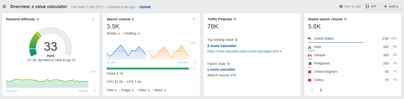 By the way, this is the type of domain I share with Gold-level subscribers of my other newsletter, EMD Gold. For example, I recently shared that zvaluecalculator .com was available. “z value calculator” has a US search volume of 3,500 and traffic potential of 78,000!!