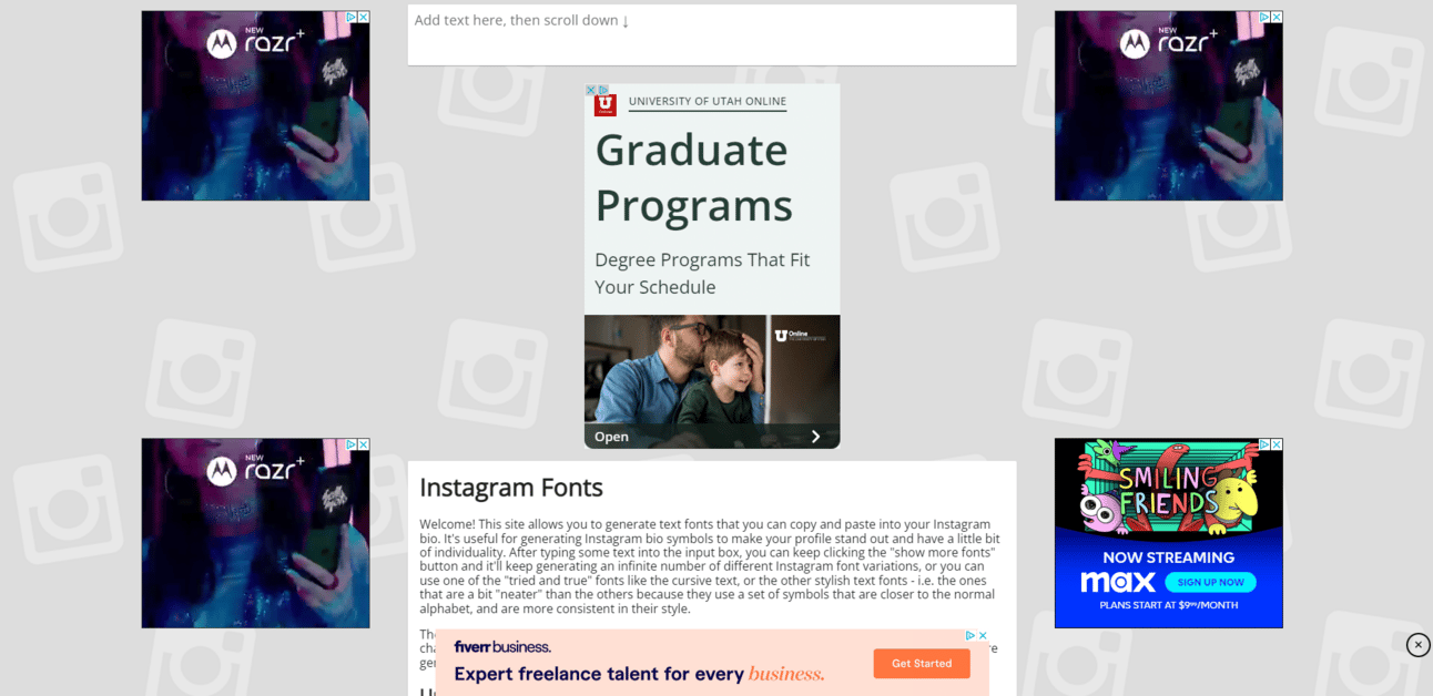 IG Fonts has the exact same functionality my site does, but with just a single page, so it’s even simpler! The only other difference is that it targets “instagram font”-related keywords. Pretty crazy.