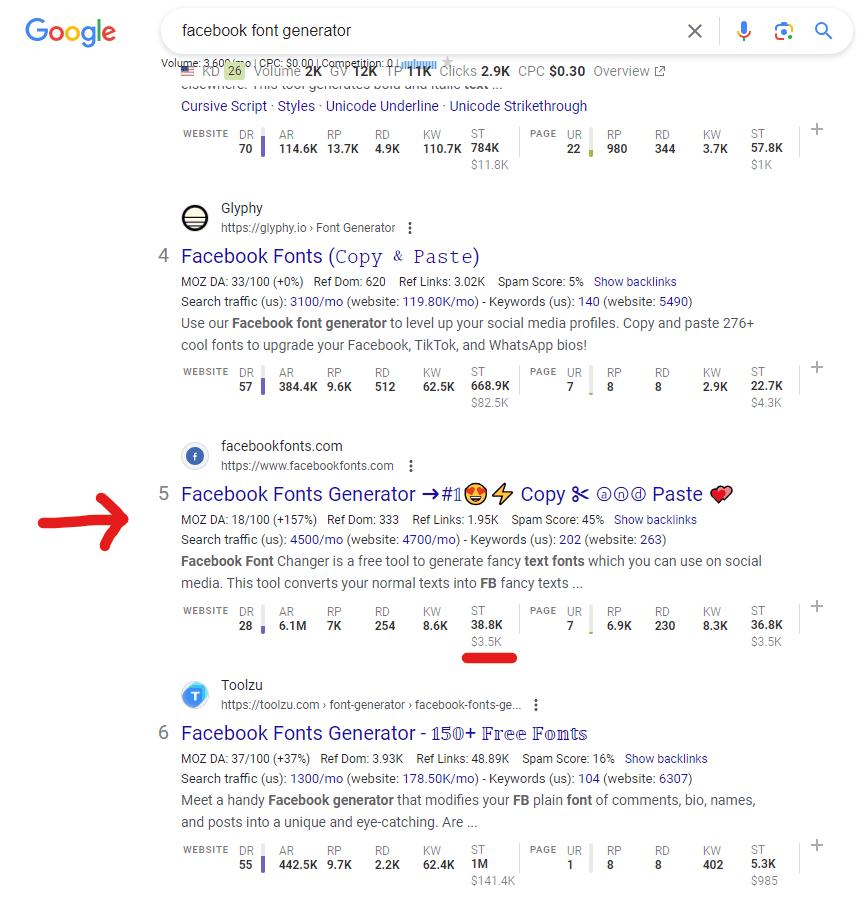Nearly 40K monthly visitors to… facebookfonts .com!??