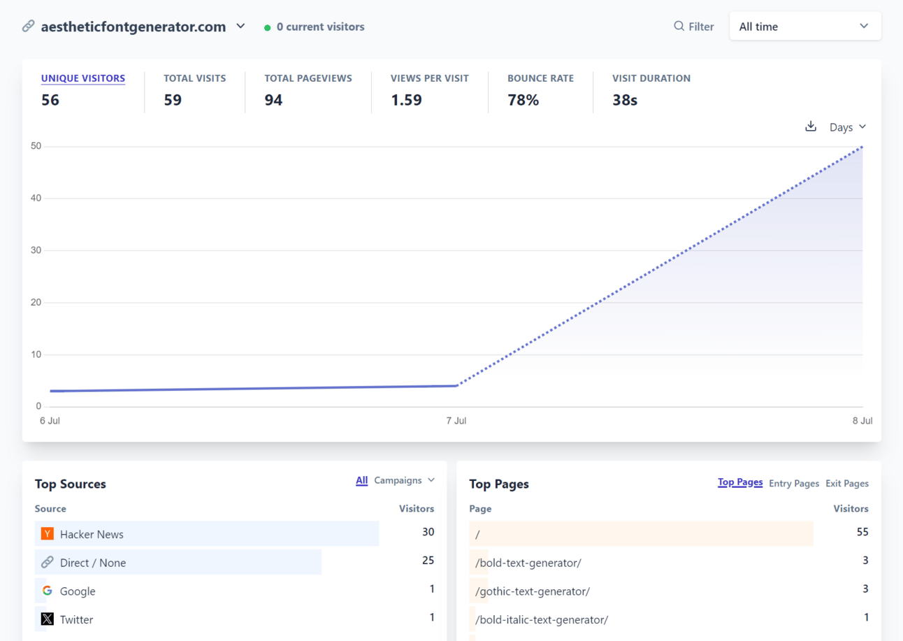 Then last night, I decided to post about the site on Hacker News. So far, that’s resulted in 30 unique visitors (despite my post having no upvotes).