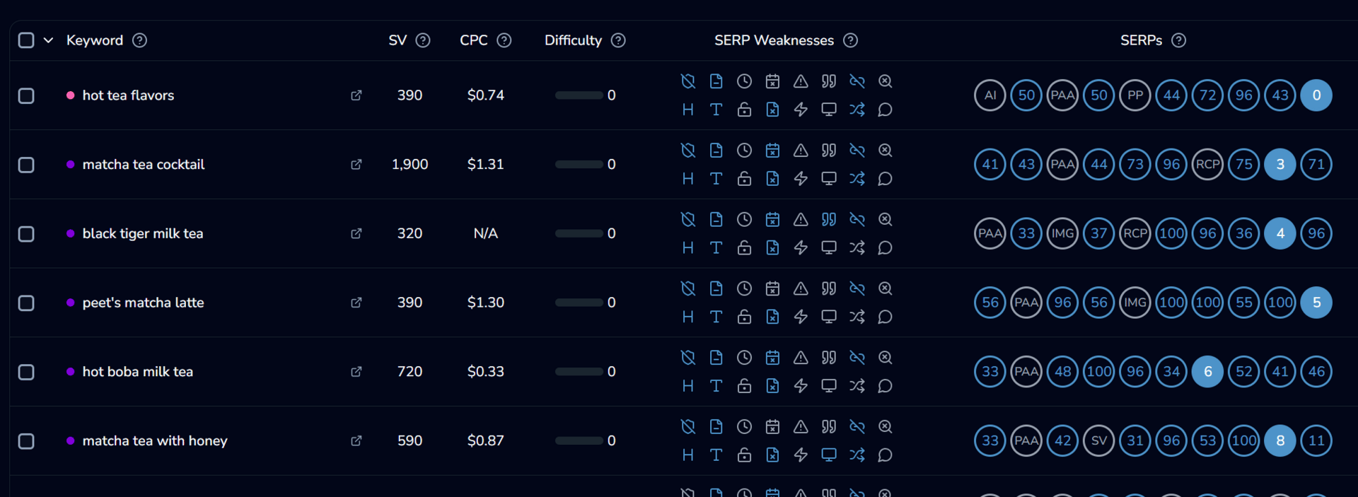 Like “strawberry matcha milk tea”, which is extremely relevant to keywords like “black milk tea recipe”.