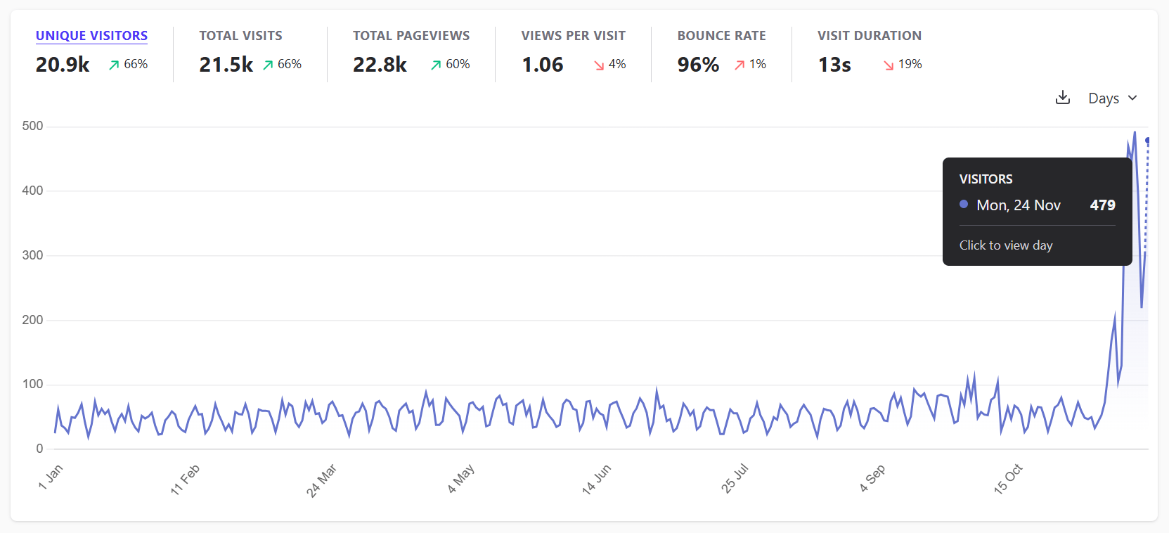 Today will be another record day. Already just 14 visitors shy of the previous record, and there are still 6 hours to go until midnight!